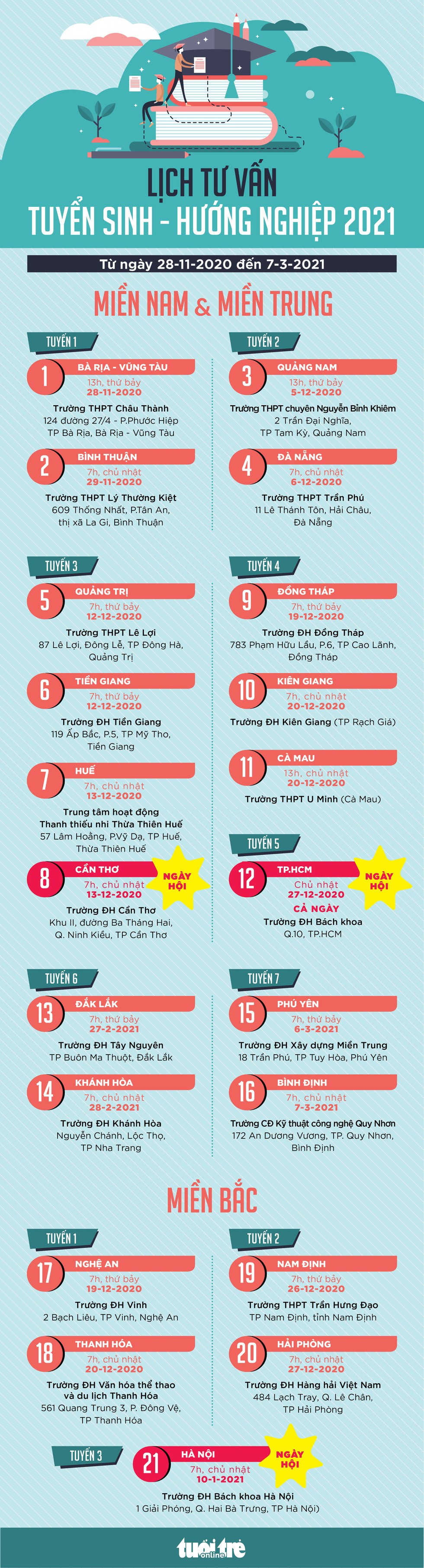 Lịch tư vấn tuyển sinh - hướng nghiệp 2021 - Đồ họa: NGỌC THÀNH